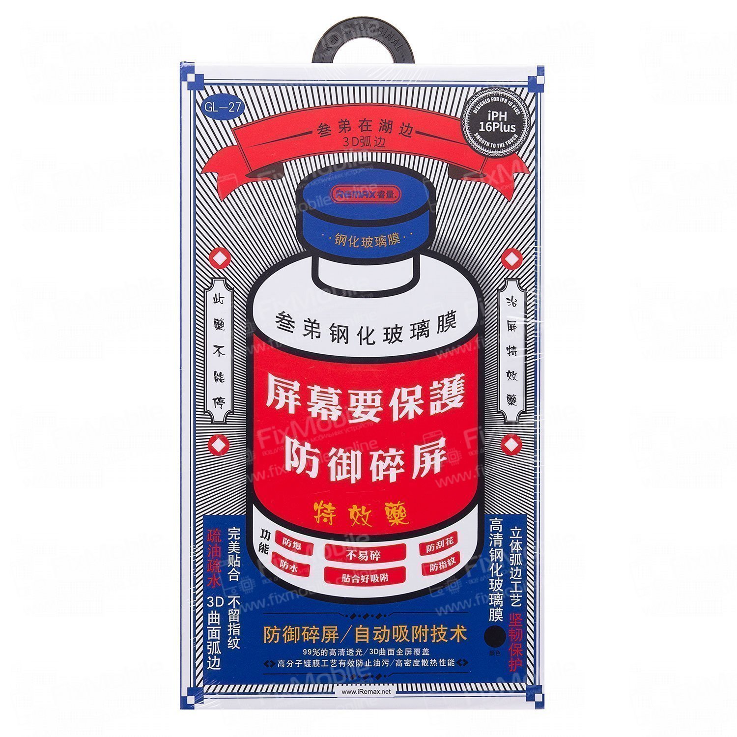 Защитное стекло Remax для Apple iPhone 16 Plus (черное)